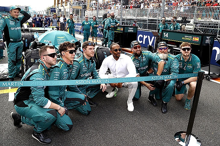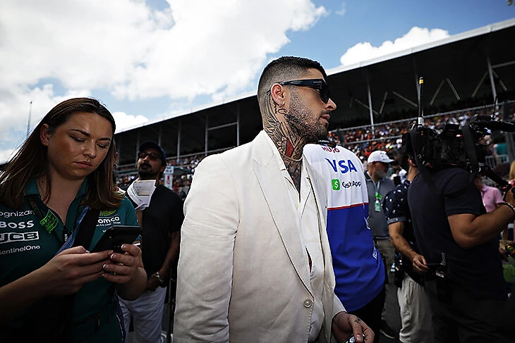 А певец Зэйн Малик, кажется, на Гран-при в первый раз – и уже под крылом «Астон Мартин». Британская марка наращивает звездное представительство – или кроссоверный контракт с Hugo Boss обязал?