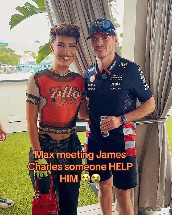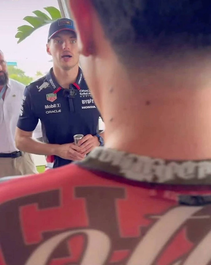А иногда работа отдела гостеприимства и маркетинга «Ред Булл» заходит слишком далеко – и они приглашают тех немногих, обязательная встреча с которыми по билету даже пугает Макса Ферстаппена. Только посмотрите на его лицо!