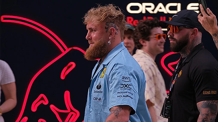 А это прям царь всех глоров – блогер и боец Джейк Пол в мерче «Феррари» явился в боксы «Ред Булл» по пассу «Ред Булл». Ждали чего-то другого?