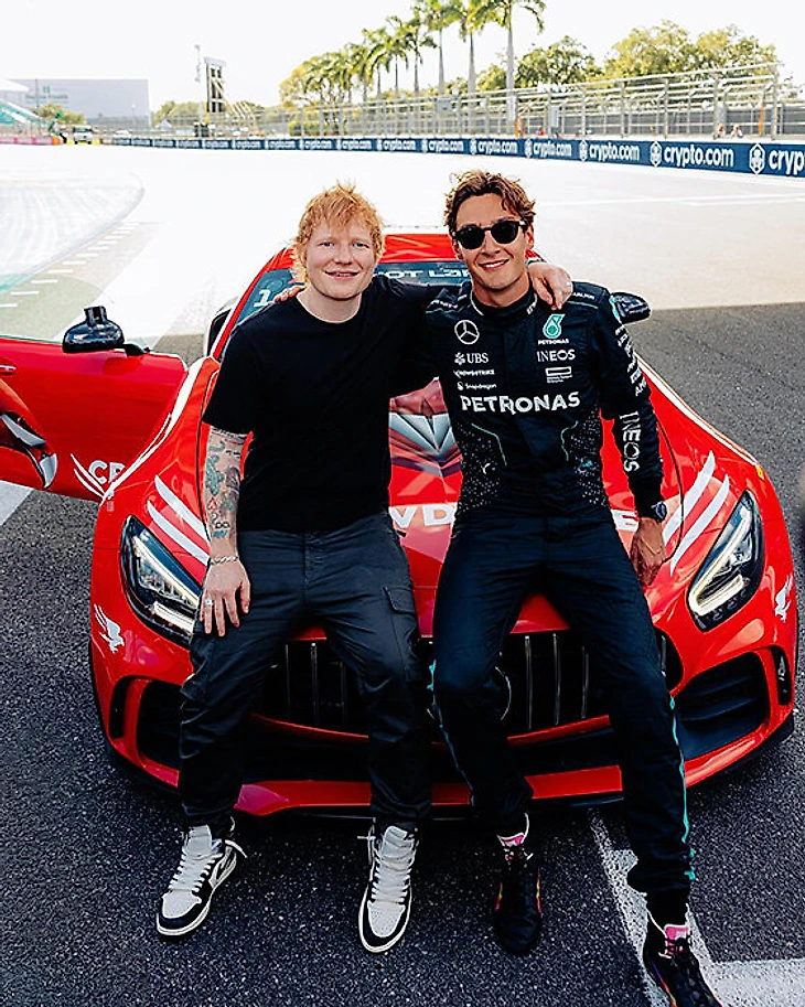 Но перед всем этим он всласть напозировался с «Мерседесом» и Джорджем Расселлом – ведь именно англо-немецкая команда пригласила его в свой паддок!