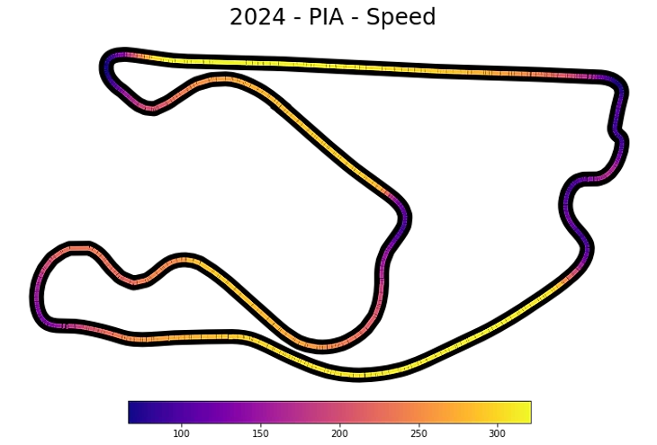 Визуализируем распределение скорости Оскара Пиастри, взявшего быстрейший круг на Гран-при Майами, на этом самом круге.