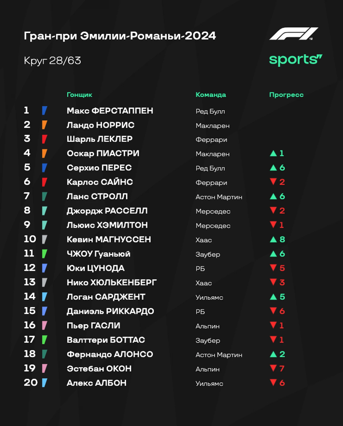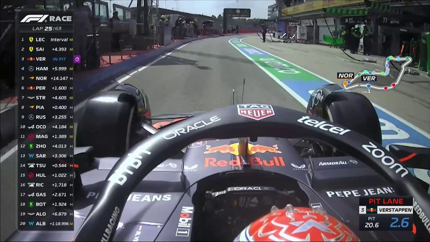 Так, а вот это уже интереснее - пит-стоп проводит Норрис. Все тот же переход на «хард» и Ландо возвращается на трассу 7-м, прямо позади Переса! Есть подозрение, что «андеркат» тут не сработает. Возможно, сейчас второе место ушло Леклеру.