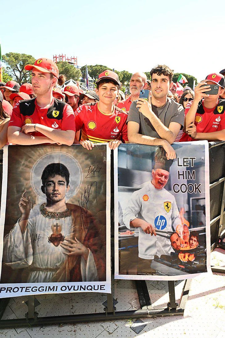 Далее Имолу ждал контракт благодаря госвложениям по программе «Сделано в Италии», и мир вновь увидел всю страсть местных тифози – настоящих «ядерных» фанатов «Феррари». Они просто сходили с ума по Скудерии и Леклеру и раньше, но в этом году безумие достигло апофеоза – ведь главный итальянский бренд не мелькал на домашнем подиуме с того самого Гран-при Сан-Марино 2006-го – легендарной победы Михаэля Шумахера над Фернандо Алонсо после многокругового напряженного преследования – а новый болид «Феррари» как раз перед домашней гонкой мощной обновили под перспективу битв за самые высокие места.
