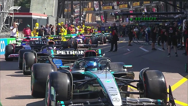 Старт первого сегмента. На выезде с пит-лейн настоящая пробка.