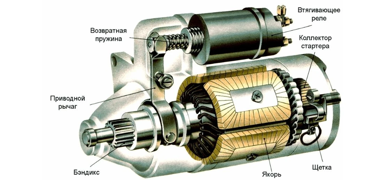 · Втягивающее реле: маленький, но важный помощник, который соединяет стартер с шестерней маховика и подает на него ток.