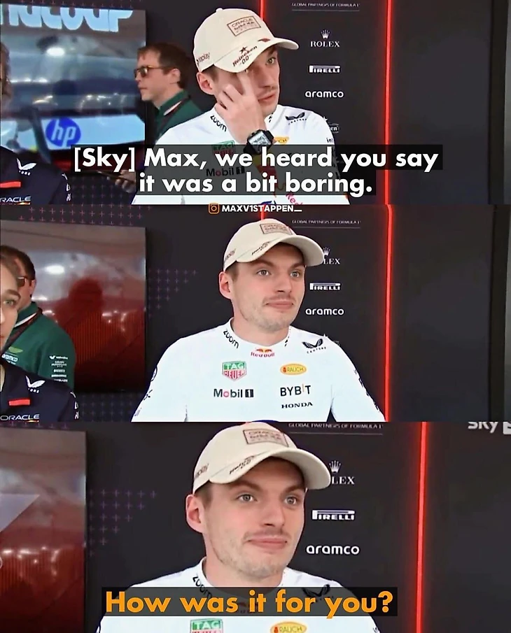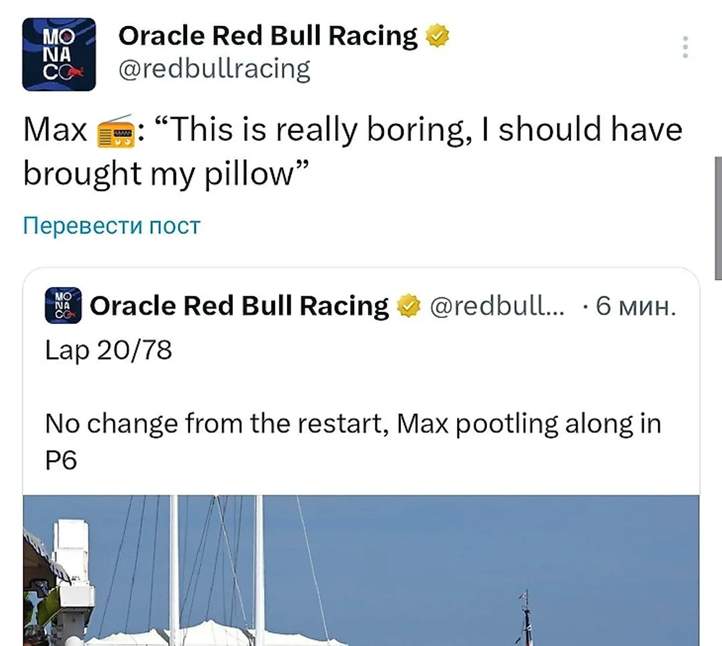 В итоге прямо во время заезда Ферстаппен комментировал происходящее словами «как же скучно, надо было взять подушку» – уже на 20-м круге.