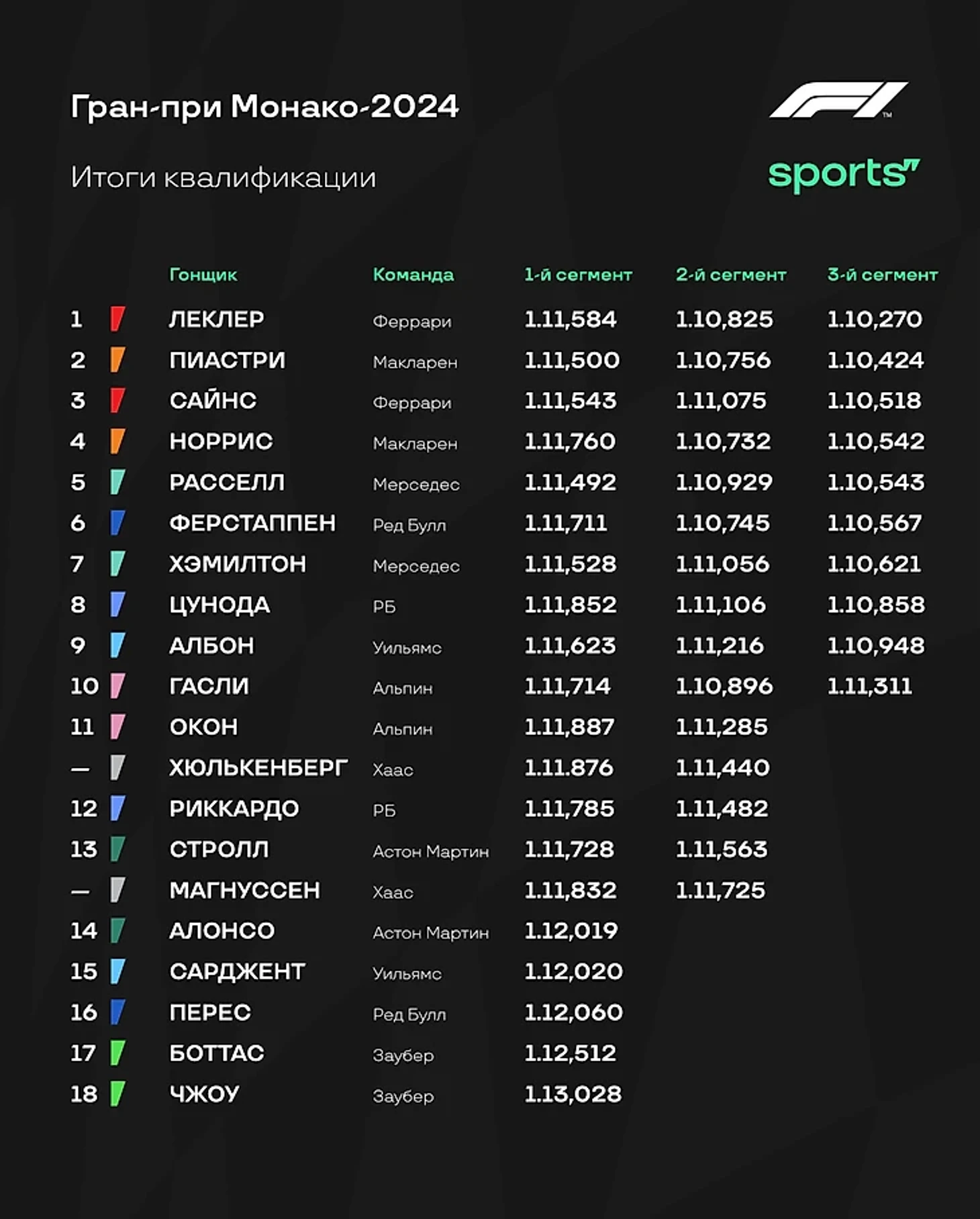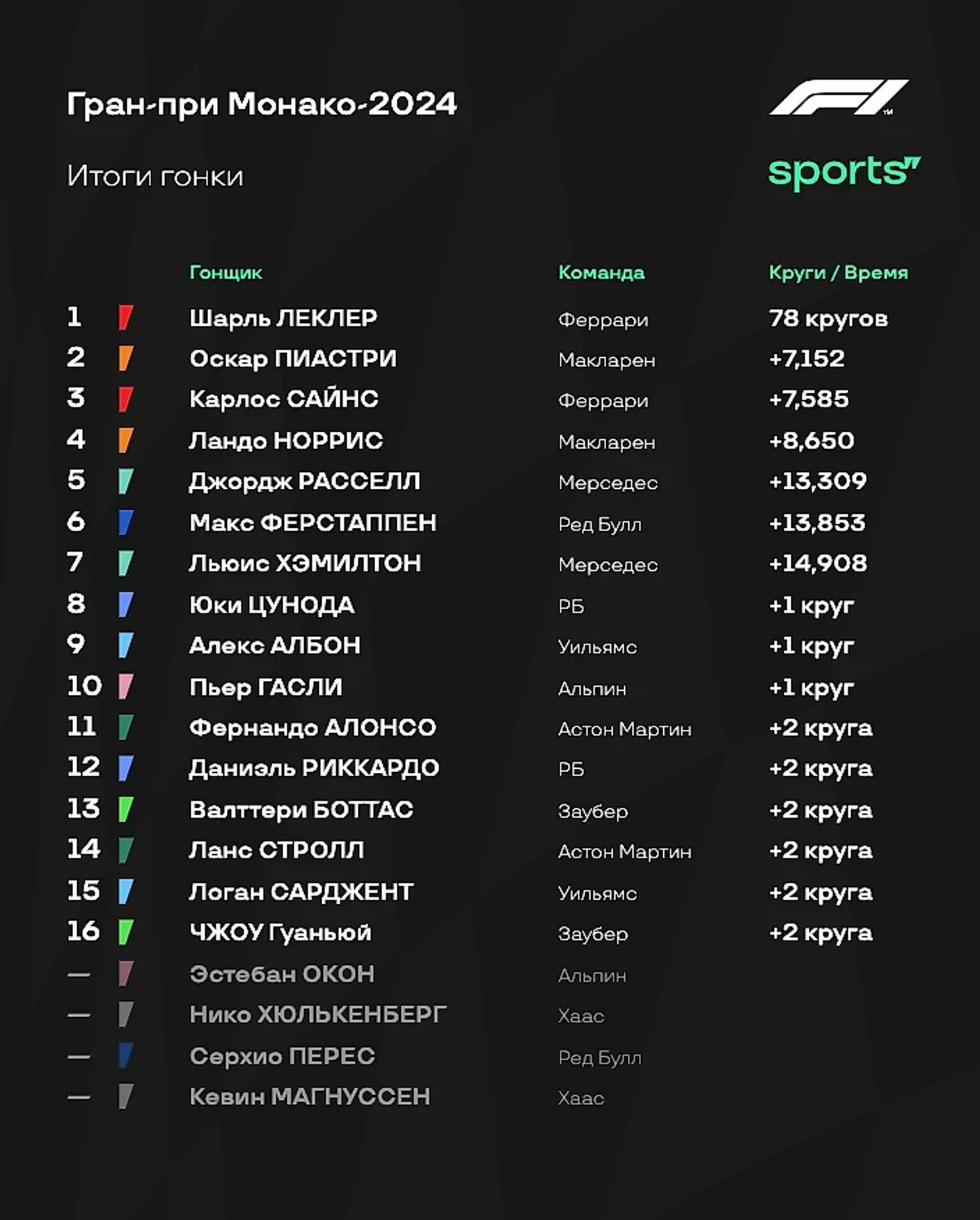 Гран-при Монако 2024-го установил рекорд – не только первой домашней победой Шарля Леклера после семи лет унижений, но еще и фееричным достижением: впервые в истории топ-10 финишировала в абсолютно том же порядке, что и стартовала!