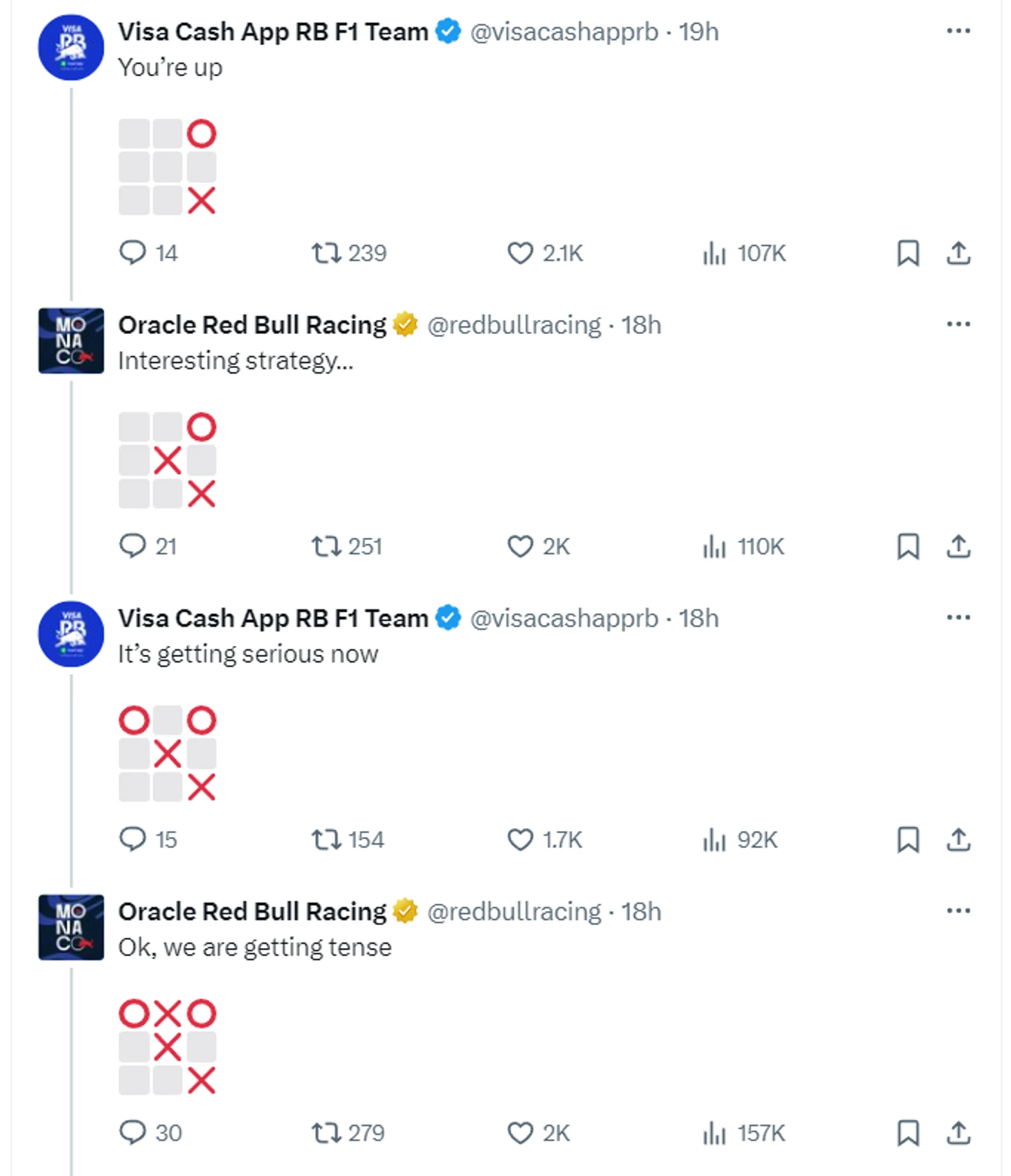 А аккаунты «Ред Булл» и «РБ» играли в крестики-нолики: