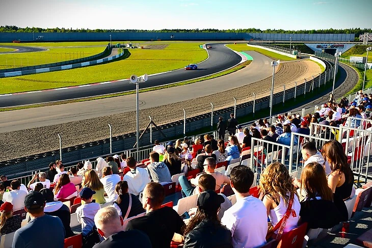 Дальше болельщики продолжают крутиться в «карусели» из множества активностей – от дрифт-такси до выставок спортивных автомобилей. Среди самых запоминающихся на мой взгляд – облет автодрома на вертолете и его бюджетная, но тоже интересная альтернатива с проездом по треку на двухэтажном автобусе. Большим плюсом является то, что устроители не пытаются навязывать лишнее: все нужные развлечения можно докупить по отдельности при оформлении базового билета для прохода на трибуны.