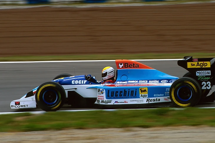 «Джордан», напротив, снова на подъеме после перерыва, вызванного аварией Баррикелло в Имоле, и с возвращением Эдди Ирвайна был в полном порядке. Казалось, эта пара была обречена на хорошие очки, особенно после того, как Баррикелло квалифицировался с лучшим результатом в карьере на пятом месте, но бразилец бросил все силы на неудачный старт и уже пробивался назад к Алези, когда на 40-м круге у него непривычно сломался двигатель «Харт». Ирвайн взял на себя ответственность, и, пережив момент в шикане и постоянно ухудшающееся проскальзывание сцепления, взял последнее очко. Если бы не эти проблемы, он мог бы опередить хорошо управляемый «Минарди» Пьерлуиджи Мартини в борьбе за пятое место, но по мере ухудшения условий трассы он благоразумно сбавил обороты, и два очка маленького итальянца ушли без дальнейших проблем. Пьеро был шестым быстрейшим в пятничной квалификации, но в субботу у него отказал двигатель, поэтому он был рад своему результату.