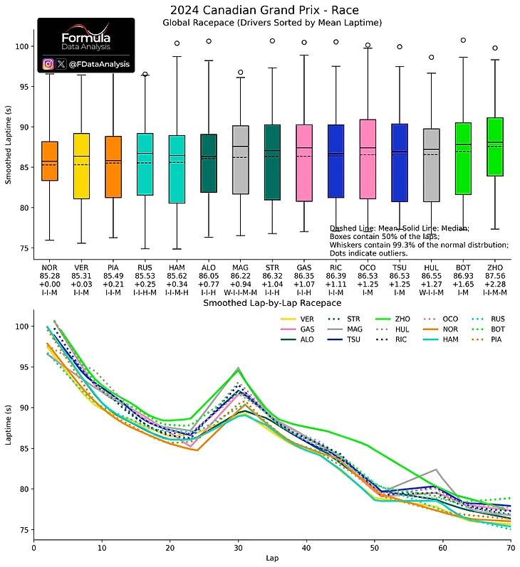 Со слов австрийца команде внезапно помешали ошибки пилотов, а не уровень техники: Расселл постоянно терял концентрацию, промахивался мимо траекторий, попадал на влажные участки и сдавал позиции, а Хэмилтон в ключевые моменты не демонстрировал нужного темпа. Кстати, Льюис при лучших кругах оказался впереди Джорджа по медианному (50% кругов быстрее) темпу, но позади по среднему – и на длинной дистанции второй важнее.