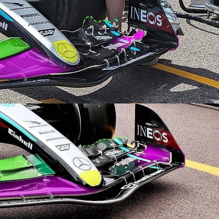 Да, «Мерседес» после дебюта нового антикрыла в Монако (из которого вышел небольшой скандал с Хэмилтоном) и пары других улучшений довез в Канаду полные апгрейды для обеих машин – и превратился в претендента как минимум на подиумы. Например, изменилась подвеска – ключевая деталь контроля дорожного просвета и генерирования прижимной силы.