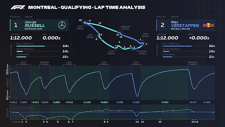 Но на Гран-при Канады тенденции дошли до абсолюта: схватку за поул определили уже не времена, а очередность выезда – Расселл из «Мерседеса» и Ферстаппен показали равные времена!