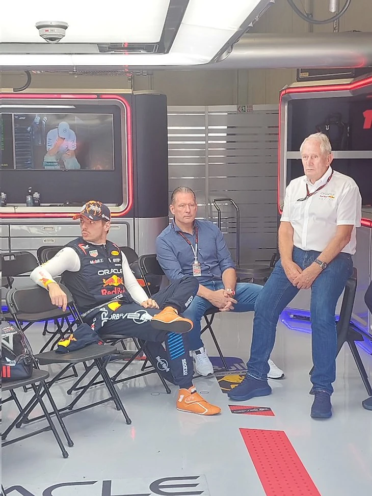 А вот еще интересный кадр: Макс и его отец Йос отдыхают вместе с советником «Ред Булл» Гельмутом Марко перед стартом спринта.