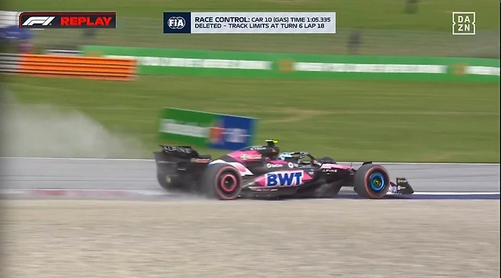 Оскар покидает третье место и падает на седьмое. Он нарушил границы трассы.