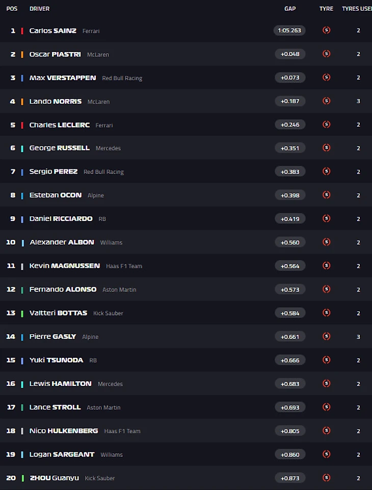 Сайнс - лидер, Перес на грани, Алонсо чудом прошел. Вылетели Албон, Стролл, Боттас, Сарджент, Чжоу.