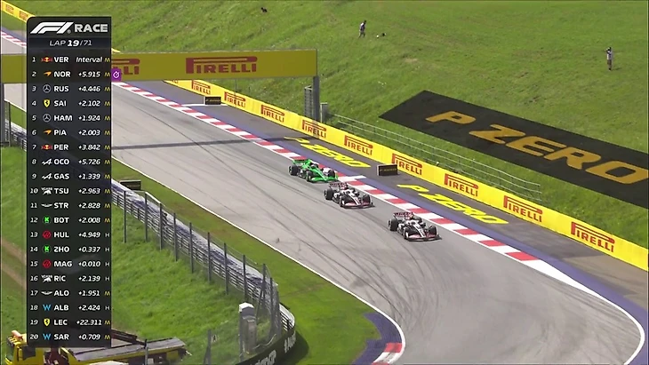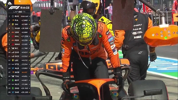 Сам Норрис уехал от Расселла на 5 секунд, Сайнс уступает еще 4 секунды.