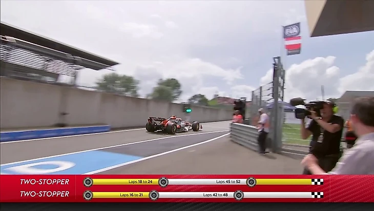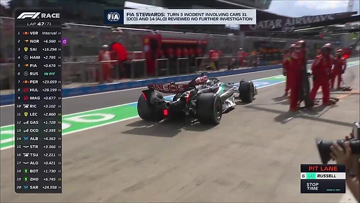 Пошли пит-стопы в лидирующей группе. Сначала в боксах побывал Расселл (и перешел на «хард»), а кругом спустя туда же отправился Сайнс (перешел на «медиум»). Между гонщиками менее 5 секунд.