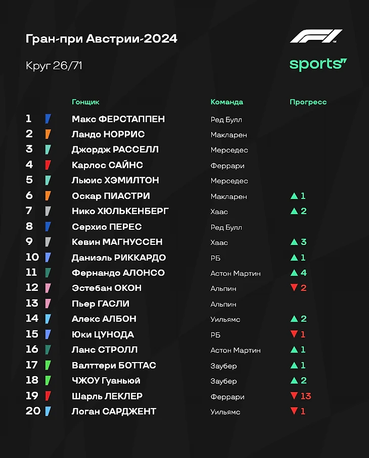 30 июня состоится Гран-при Австрии, 11-й этап «Формулы-1» сезона-2024.