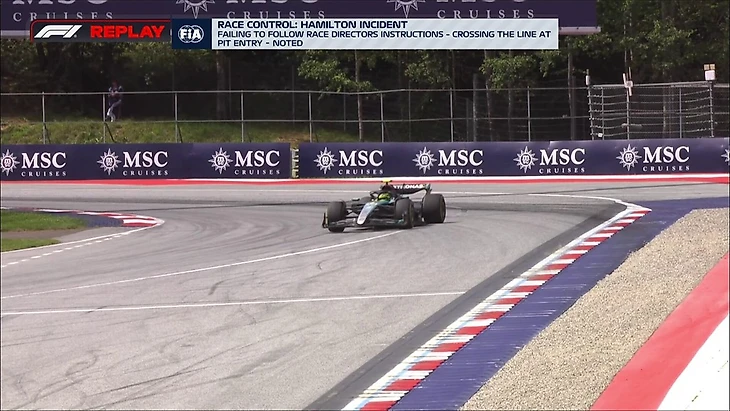 У Льюиса могут быть неприятности. Пилот «Мерседеса» пересек разграничительную белую линию на въезде на пит-лейн. Стюарды уже расследуют.