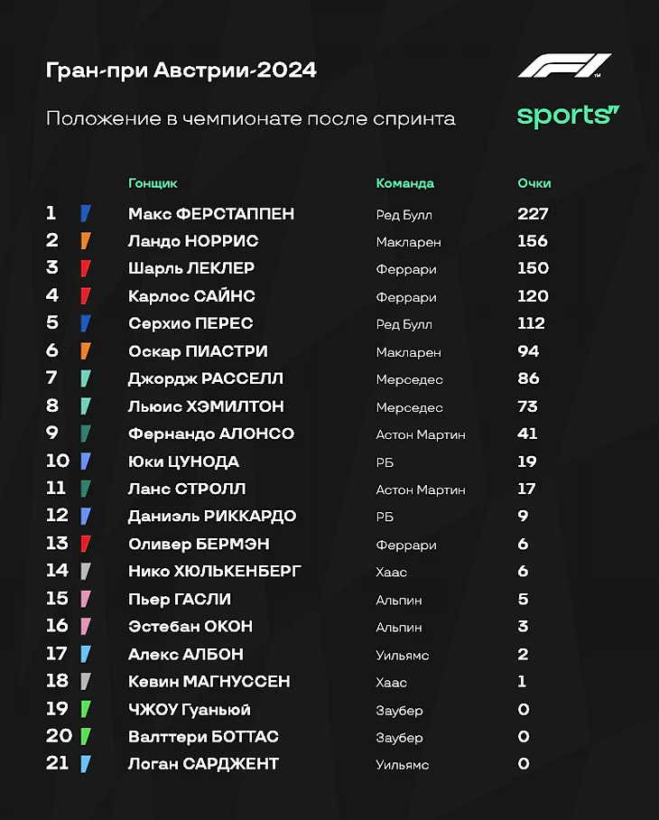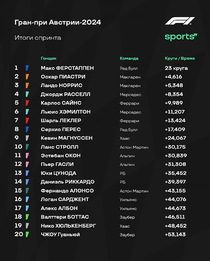 ● Ферстаппен после переобгона Норриса гроссмейстерски довел спринт до победы, Пиастри сдержал главного неудачника Ландо, а №4 забрал лучший круг.
