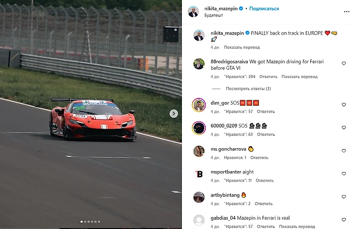 Но теперь все изменилось, и Никита действительно сразу вспомнил о желании вновь гоняться в Европе. И тут же доказал амбиции на деле: моментально отправился но новую трассу «Балатон Парк» в Венгрии, чтобы протестировать автомобиль LMGT3: «Феррари» 296 GT3. Явно с прицелом под надежду найти гоночную серию или команды, с которой можно было бы запартнериться – и поехать, например, и в чемпионате мира по гонкам на выносливость, где выступают на такой технике.