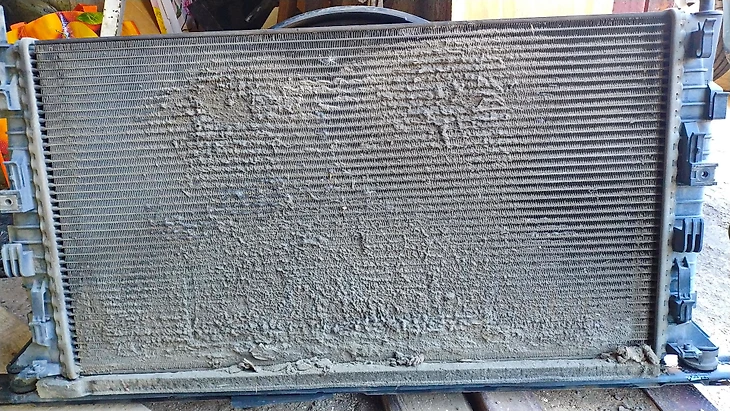 Если выполнили все вышеперечисленные действия и никаких неисправностей не обнаружили, то дело может быть в забитом радиаторе охлаждения, воздушной пробке или проблем в самом двигателе. Вот, например, как выглядит забитый радиатор охлаждения.
