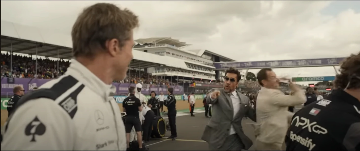 На фото, которые появились после Гран-при Великобритании 2023 года, видно, как два вымышленных пилота идут к решетке, а позади них − Карлос Сайнс и Эстебан Окон. Актеров также видели на прошлогодней решетке перед началом гонки во время исполнения британского гимна.