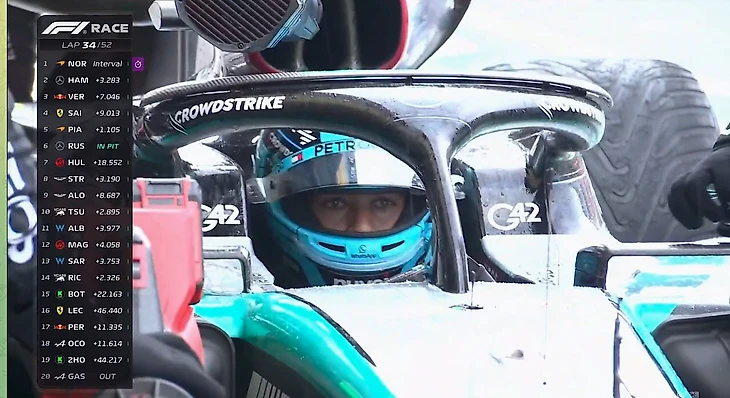 На 19-м круге Джордж пошел в контратаку, оба вылетели с трека и позволили Норрису приблизиться – Ландо тут же объехал Расселла.