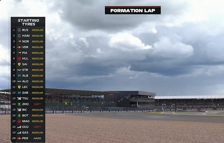 Хэмилтон лучше сорвался с места, но Расселл быстро занял оборонительную траекторию. Льюис попытался воспользоваться слипстримом, но Джордж отбился, а затем Ферстаппен опередил Норриса в первой же связке поворотов!