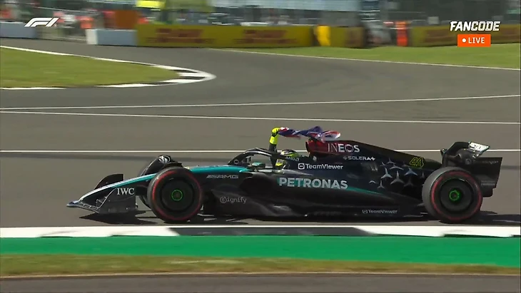 Да, №44 уходит из «Мерседеса» с домашней победой! Маршалы даже вынесли ему британский флаг – и Льюис стал первым, кому удалось победить после 300-го старта. История!