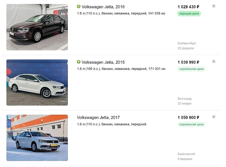 Меньше всего проблем в эксплуатации с атмосферным седаном с АКП, хорошо себя показывает и турбированная Jetta. Она дороже в обслуживании, но нет проблем с динамикой. Обновленных Volkswagen Jetta в продаже на вторичном рынке много. Больше всего предложений для «атмосферником» в паре с МКП и турбомотор в паре с DSG. Цены на седан стартуют от 1 000 000 рублей.