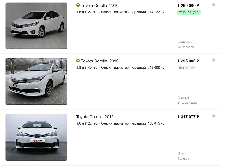 Лучше всего присмотреться к среднему варианту. Toyota Corolla с двигателем 1,6-литра идет как с «механикой», так и «автоматом». За обозначенный бюджет авто в продаже не так много. В основном это дорестайлинговые экземпляры. Самая распространенная вариация на рынке — седан с мотором 1,6 литра в сочетании с вариатором. Стоимость машины от 1 200 000 рублей.