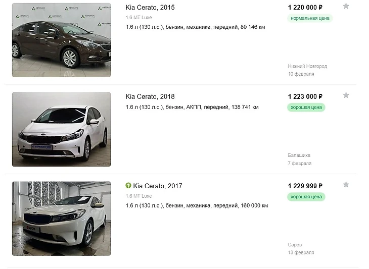 Если есть возможность, то выбирайте обновленный Kia Cerato с 2,0-литровым двигателем. За указанный бюджет вы можете найти авто в хорошем состоянии. В продаже больше вариантов с мотором 1,6-литра с АКП. Найти 2,0-литровый двигатель чуть сложнее. Стоимость седана стартует от 1 200 000 рублей.