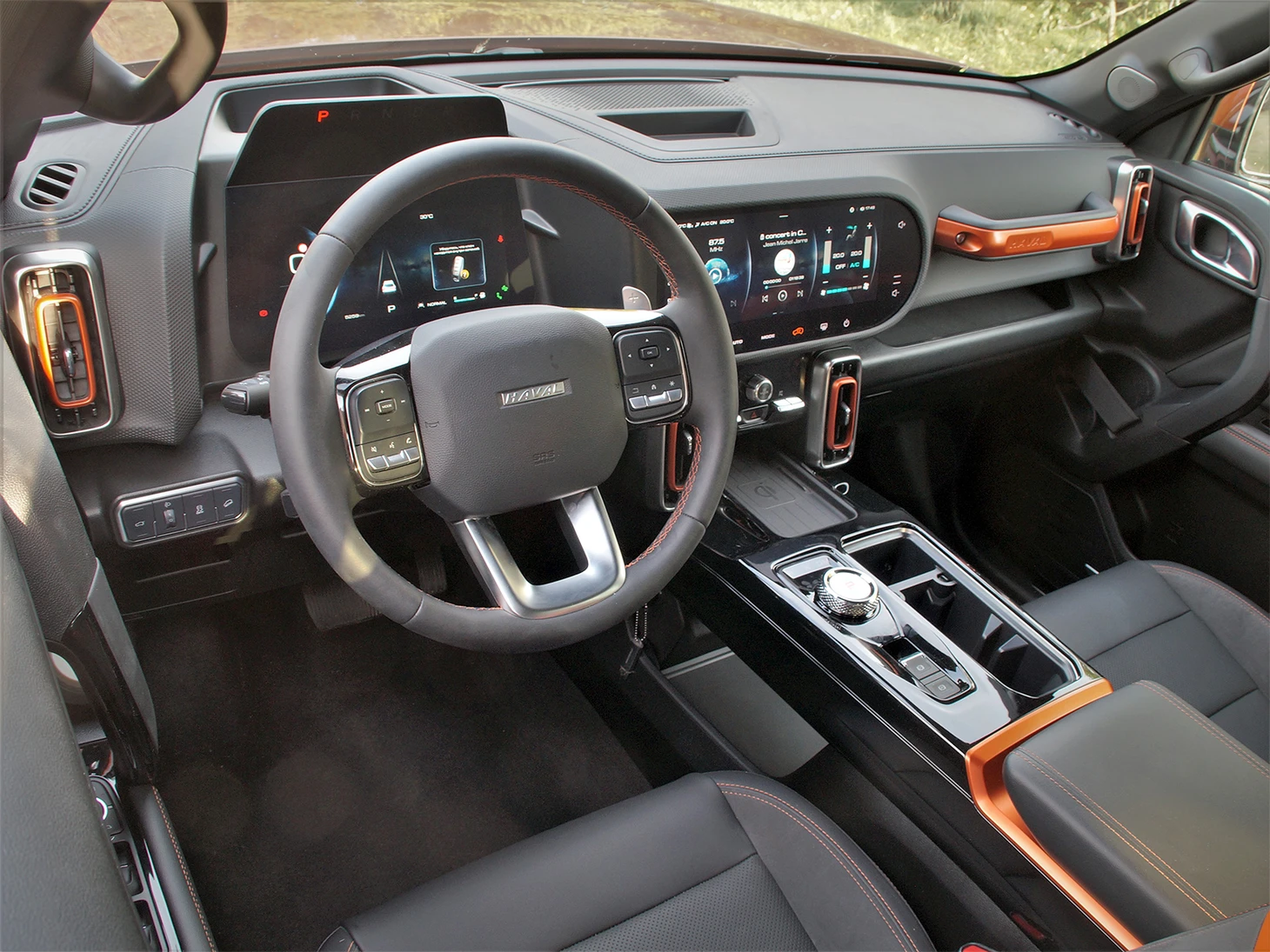 Из «теплых» функций также есть подогрев руля, кресла с электрорегулировками и вентиляцией. На панели приборов установлен дисплей размером двенадцать дюймов, такого же размера и мультимедийный дисплей. Он работает в паре с акустической системой состоящей из двенадцати динамиков. В базовой версии есть беспроводная зарядка для смартфонов, салонной зеркало с самозатемнением, панорамная крыша и багажная дверь с электроприводом, дверь к тому же имеет функцию открывания без рук. Литые диски размером двадцать дюймов и рейлинги.