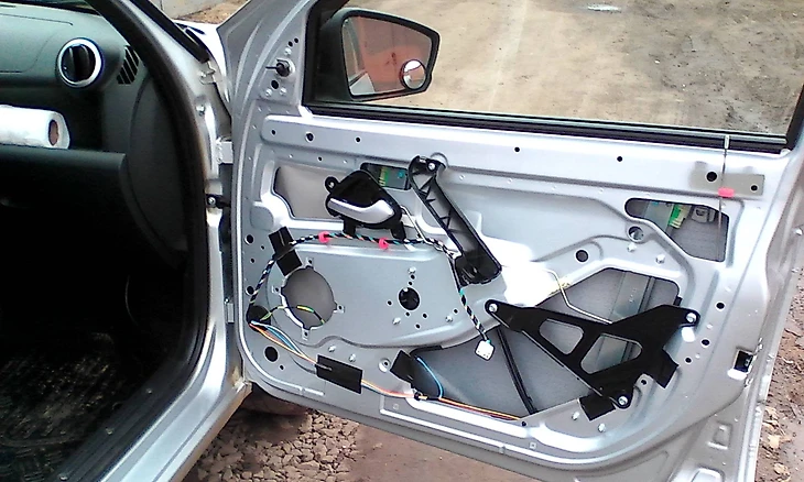 И последнее. До того как полностью снять обшивку и отставить ее в сторону, не забывайте, что под ней могут находиться провода к механизму стеклоподъемников, если они с электроприводом, к лампочкам подсветки или динамикам музыкальной системы.