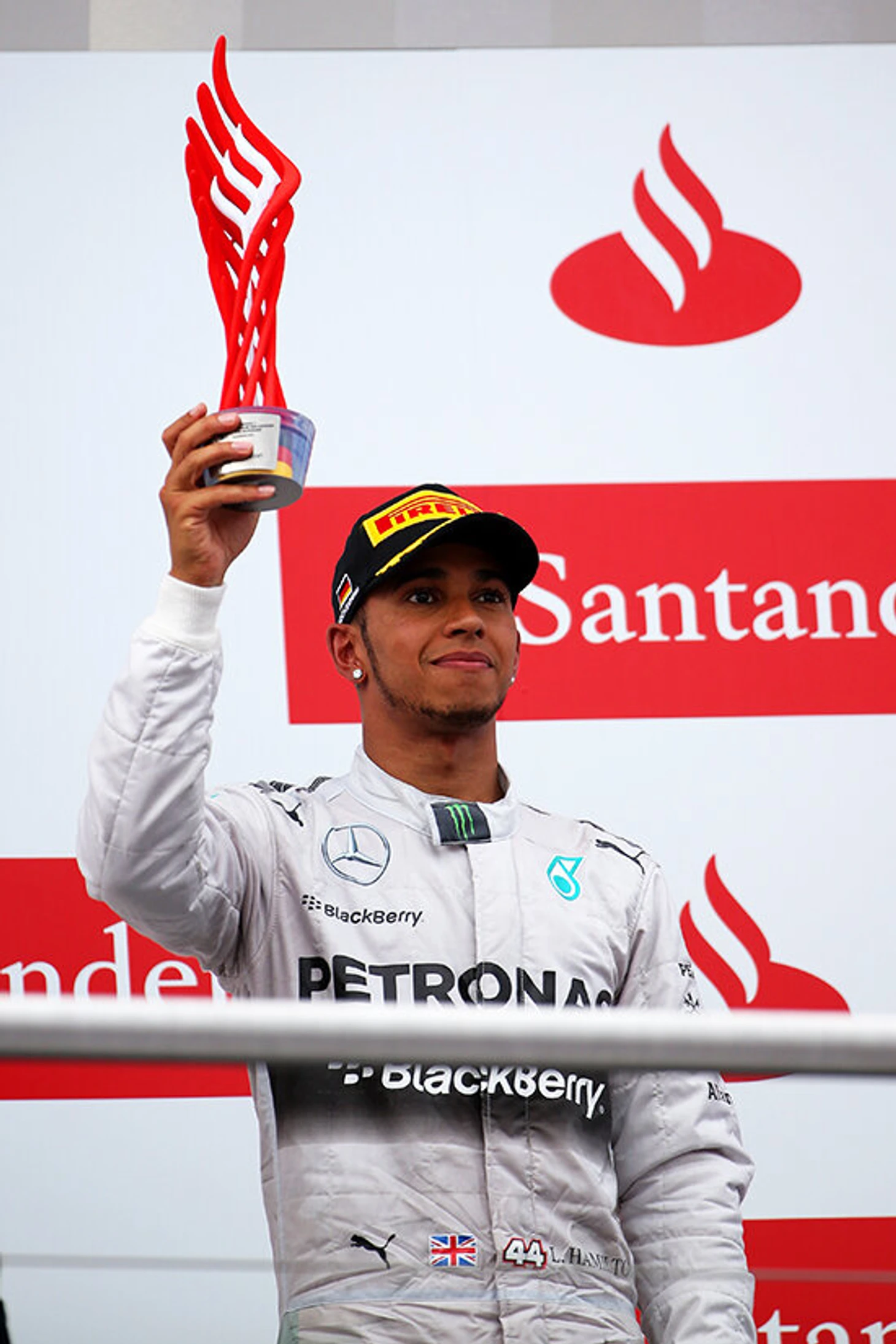 Ровно 10 лет назад Гран-при Великобритании так же отличилось необычным дизайном трофея. Тогда вместо традиционного кубка Королевского Автомобильного Клуба, дебютировавшего еще в 1970-е, Льюису Хэмилтону вручили награду в форме логотипа спонсора этапа – банка Santander (в наши дни компания спонсирует «Феррари»).