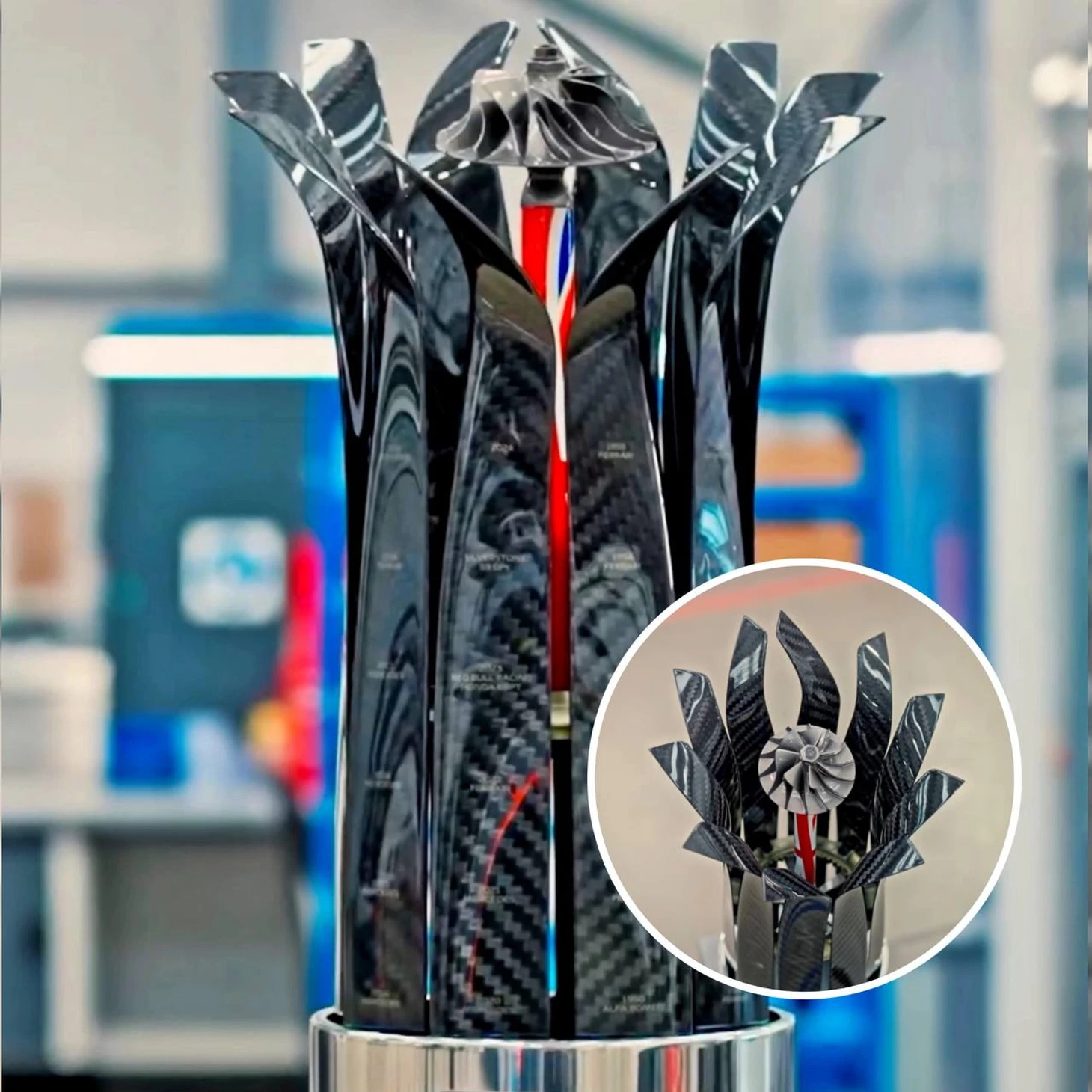 Вообще в «Ф-1» набирает обороты тренд на необычные трофеи, которыми пытаются выделиться многие этапы. Для Гран-при Великобритании придумали карбоновые инсталляции: цветок из запчастей болида.