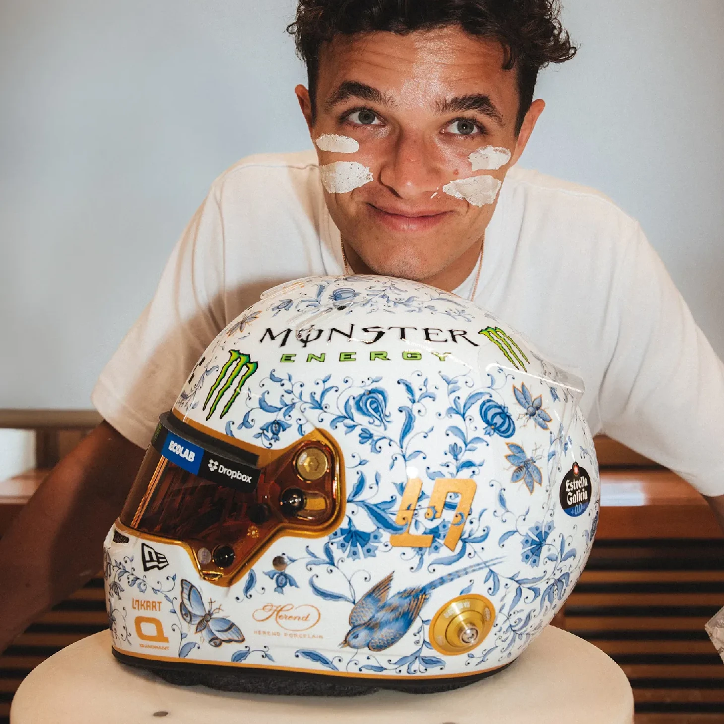 А для этапа 2024-го в знак раскаяния Ландо за прошлогодний инцидент пилот заколлабился с компанией-создателем кубков и подготовил расписанный вручную шлем, напоминающий разбитую вазу Макса.