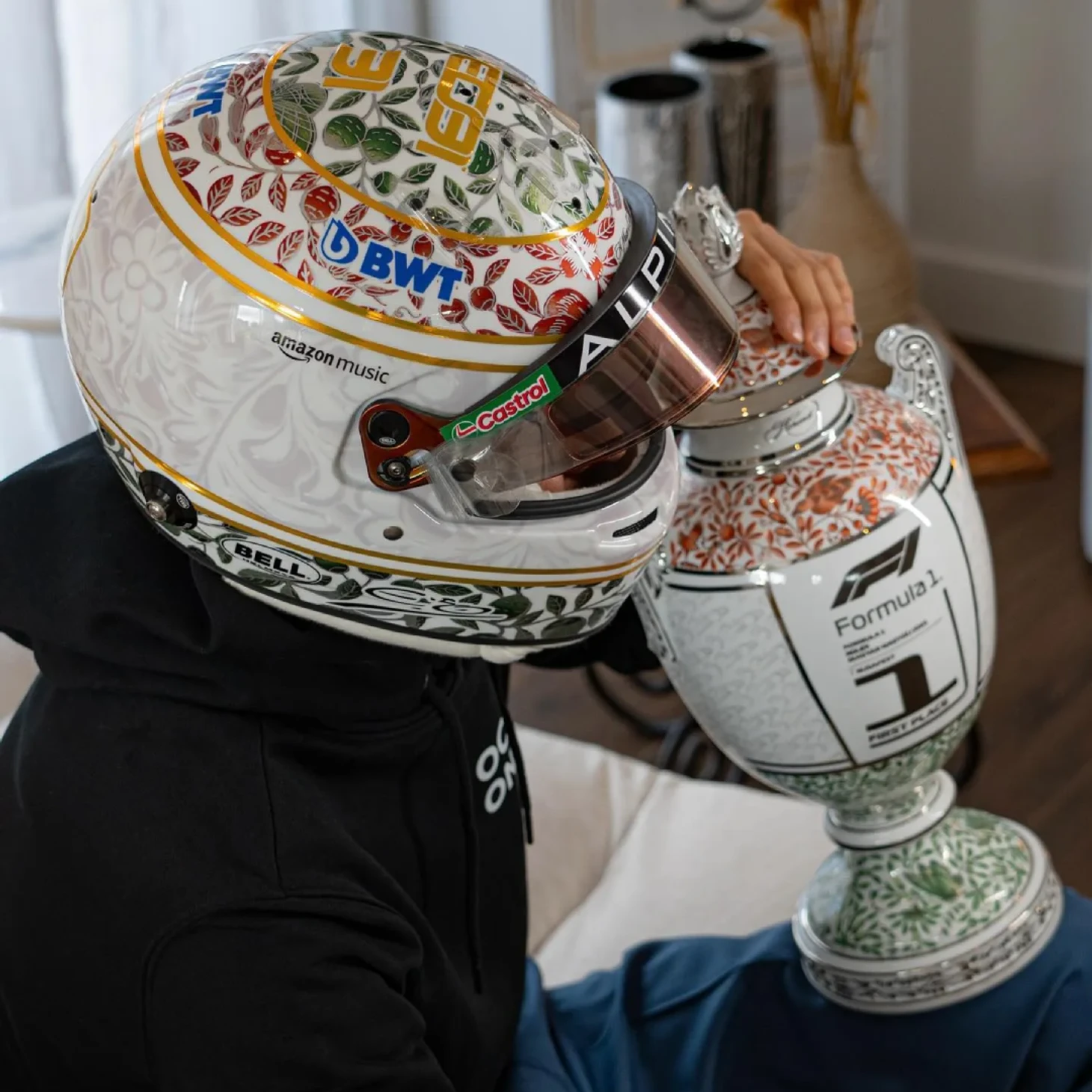 Кубок для Гран-при Венгрии настолько красив, ценен и важен, что его с радостью используют в дизайнах и другие. Например, Эстебан Окон: полностью скопировал роспись со своего победного трофея 2021-го года.
