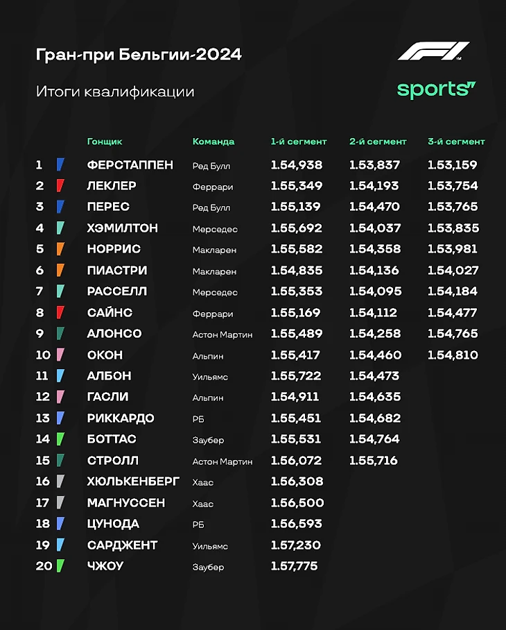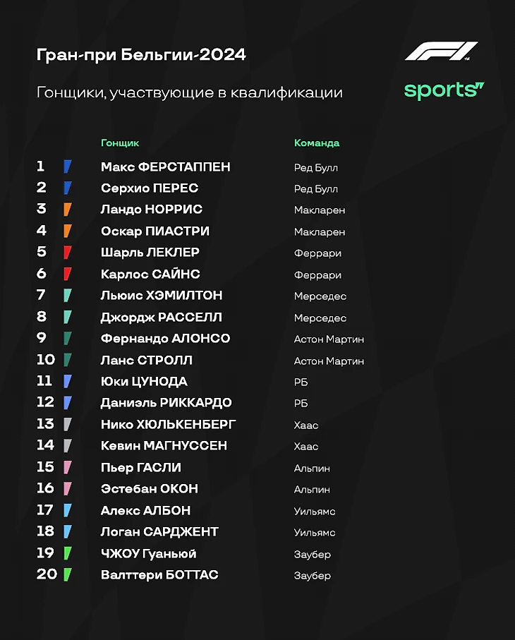 27 июля состоится квалификация к 14-му этапу «Формулы-1» сезона-2024, Гран-при Бельгии.