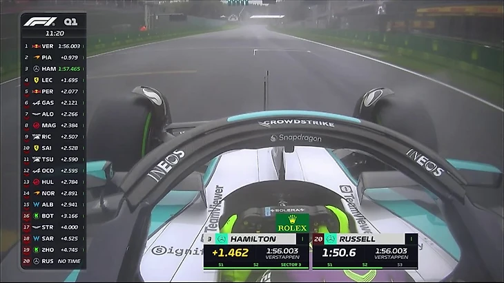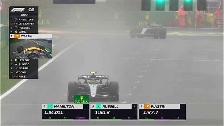 Оу! Льюис в первой попытке сделал Пиастри, сумев опередить его на 0,016 секунды. Но потом их обоих сделал Перес! Дальше Расселл и Норрис. Сайнс и Леклер пока далеко, но там явно изношенные комплекты промежуточных шин.