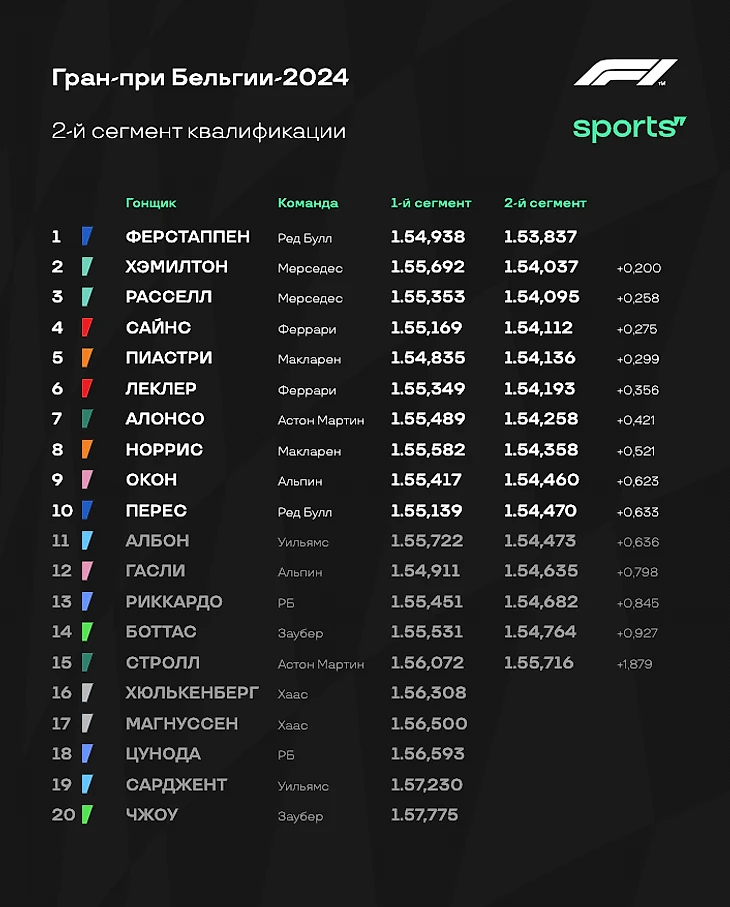 Из борьбы выбывают: Хюлькенберг, Магнуссен, Цунода, Сарджент и Чжоу.