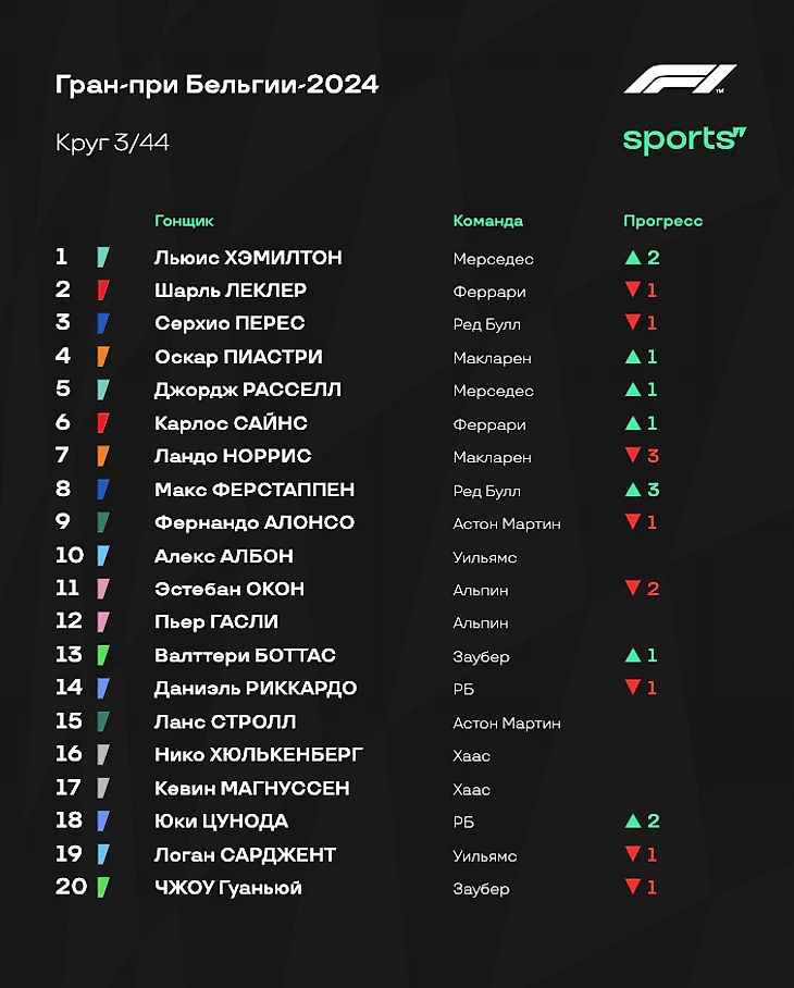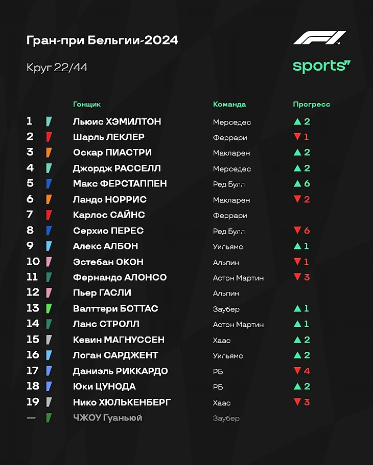 Позиции после остановок Леклера и Хэмилтона