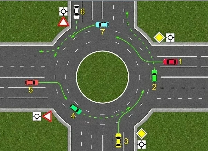 2.1 «Магистральный путь»: автомобилисты, въезжающие на круг по главному маршруту, обладают первенством перед теми, кто циркулирует по кольцу.
