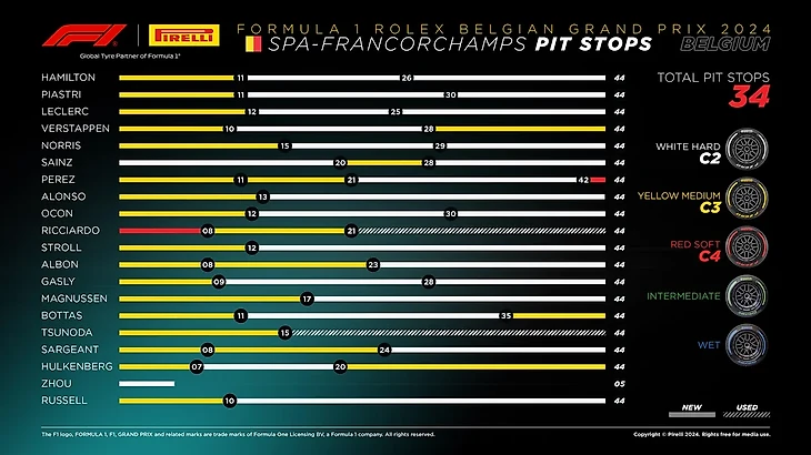 Кроме британца нашелся еще один гонщик, который выбрал тактику одной остановки. Это был Фернандо Алонсо, который также использовал жесткие шины на своем последнем отрезке, хотя перешел на них на три круга позже Расселла. Тем не менее, он использовал жесткие шины на тренировке, поэтому в «Астон Мартин» должны были знать больше о степени их износа.