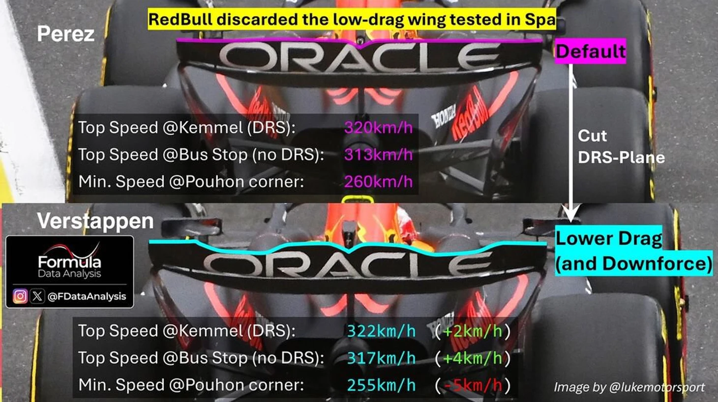 В Бельгии меньше техничных поворотов, и команда вернула старый обвес, перейдя к экспериментам с задним и балочным антикрыльями – вновь ради попыток перебалансировать скорость на прямых и в быстрых поворотах.