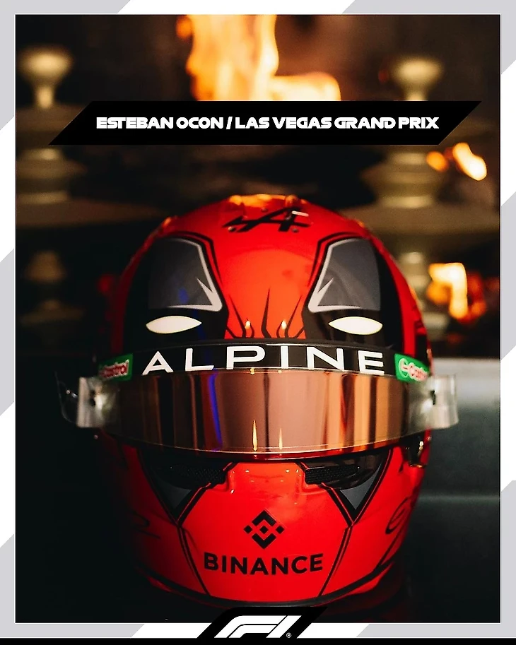 Одну из первых и самых ярких коллабораций с новыми инвесторами показали в США. Эстебан Окон для Гран-при в Вегасе подготовил специальный шлем, на который нанес маску Дэдпула. Его роль, как известно, играет соинвестор французов и по совместительству голливудская звезда Райан Рейнольдс.