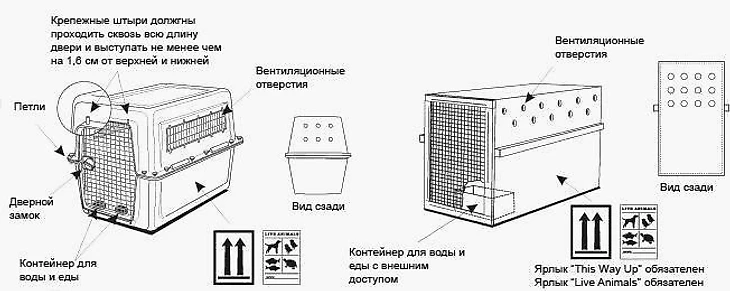 Помимо специфических требований перевозчика о габаритах и массе клетки, существуют общие критерии выбора контейнера, обеспечивающие комфорт и безопасность животного:
