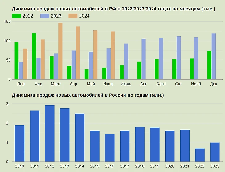 Отложенный спрос: в 2022-2023 годах из-за санкций и логистических проблем многие россияне отложили покупку нового автомобиля. В 2024 году, с постепенным восстановлением рынка и появлением новых каналов поставок, этот отложенный спрос начал реализовываться.